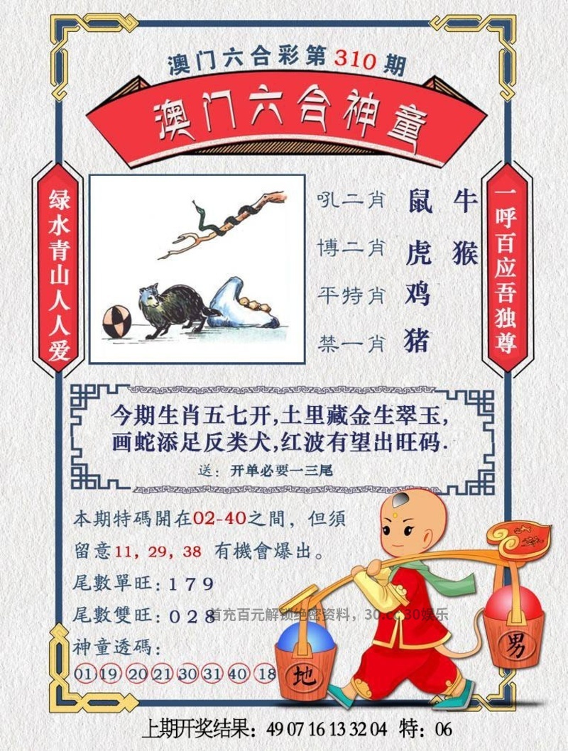 | 312期 | 三期必中 (鼠蛇兔马) | 开 | ||